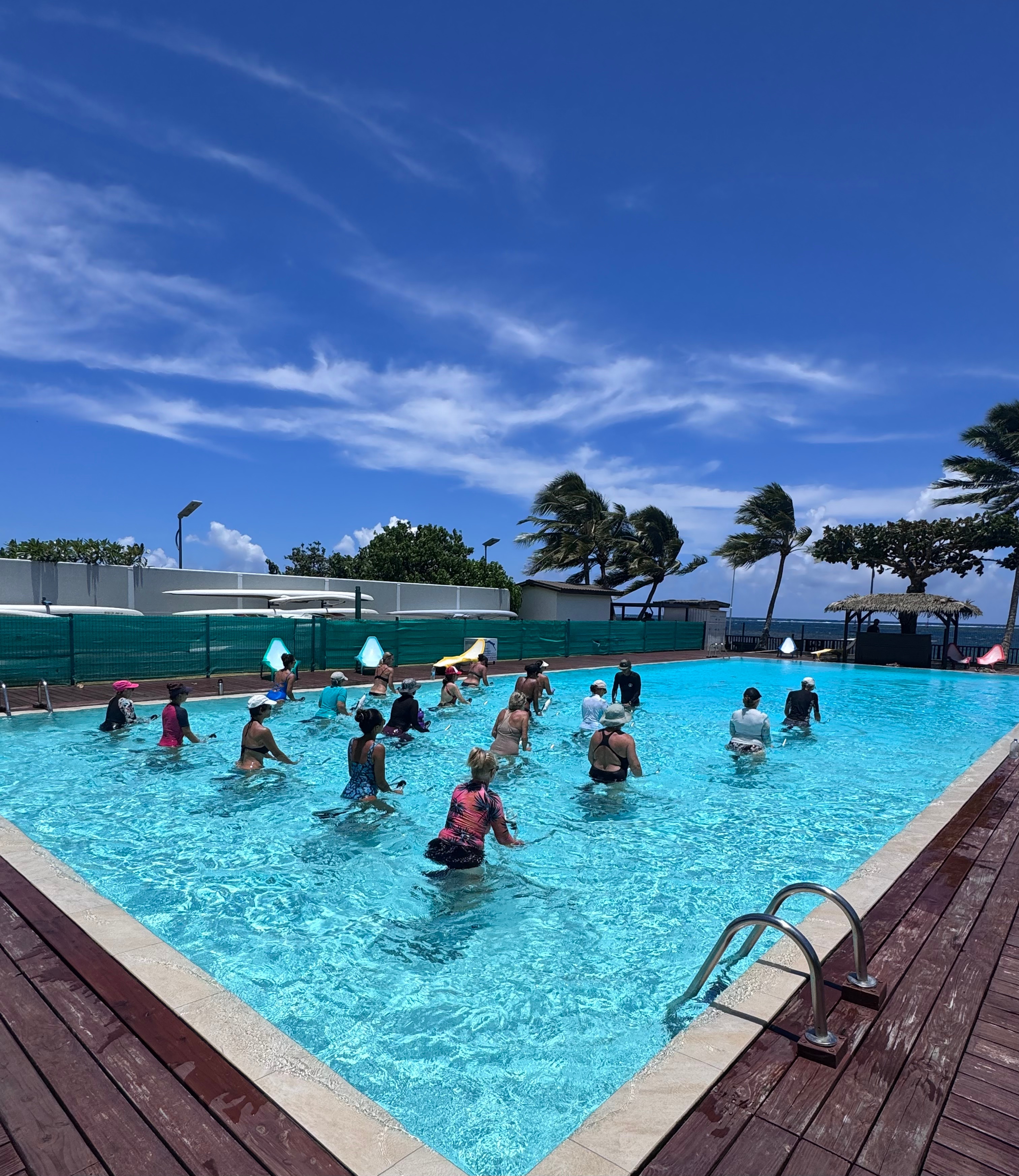 Situés dans la piscine du complexe sportif de l’OPT à Pirae, nous proposons 12 cours d’aquabike par semaine du lundi au samedi. Ouvert à tous, débutants ou adeptes réguliers, nos coaches vous proposent leur expertise pour un cours de 45 minutes varié et complet.